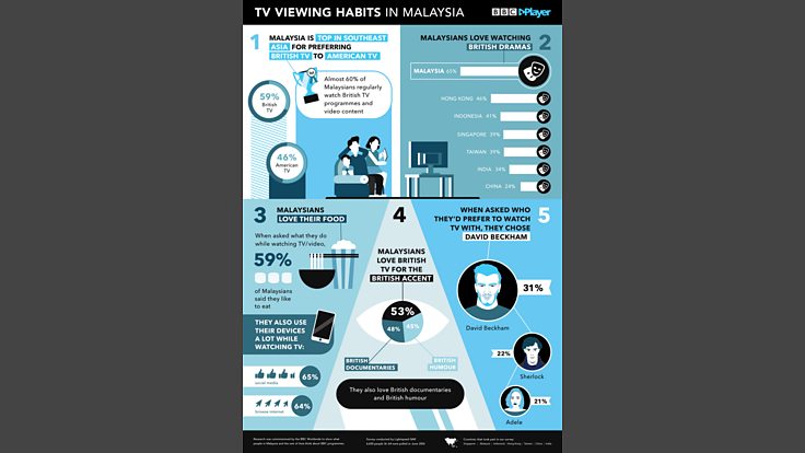 Malaysia is also the top country in South East Asia (SEA) to prefer British content (59%) over American TV (46%). And they watch it regularly – with almost 60% of the 727 Malaysians polled regularly watching British TV programmes and video content. Some of the programmes most popular among BBC Player users in Malaysia are Doctor Who Series 10, Planet Earth II and Top Gear Series 24.