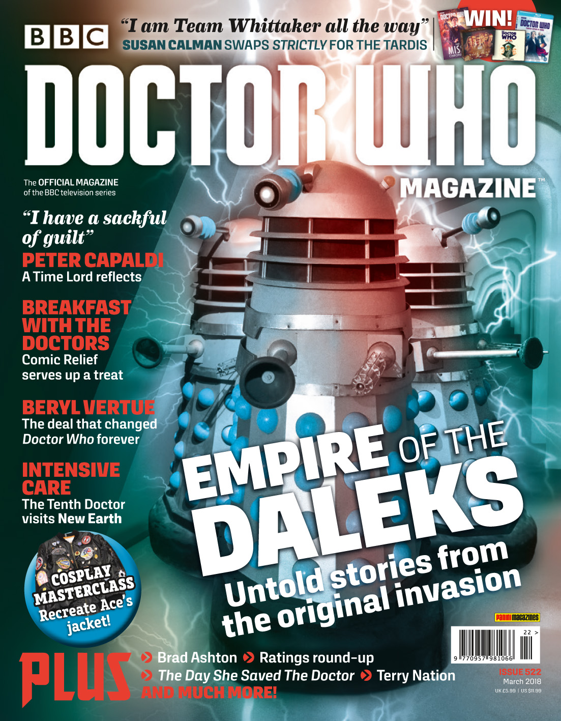Issue 522 also sheds new light on the Dalek craze of the 1960s, as agent Beryl Vertue and writer Brad Ashton remember the roles they played. “The Daleks were really the beginning of the BBC handling merchandise,” says Beryl. “None of us really knew what we were doing, so one might say we invented it.”