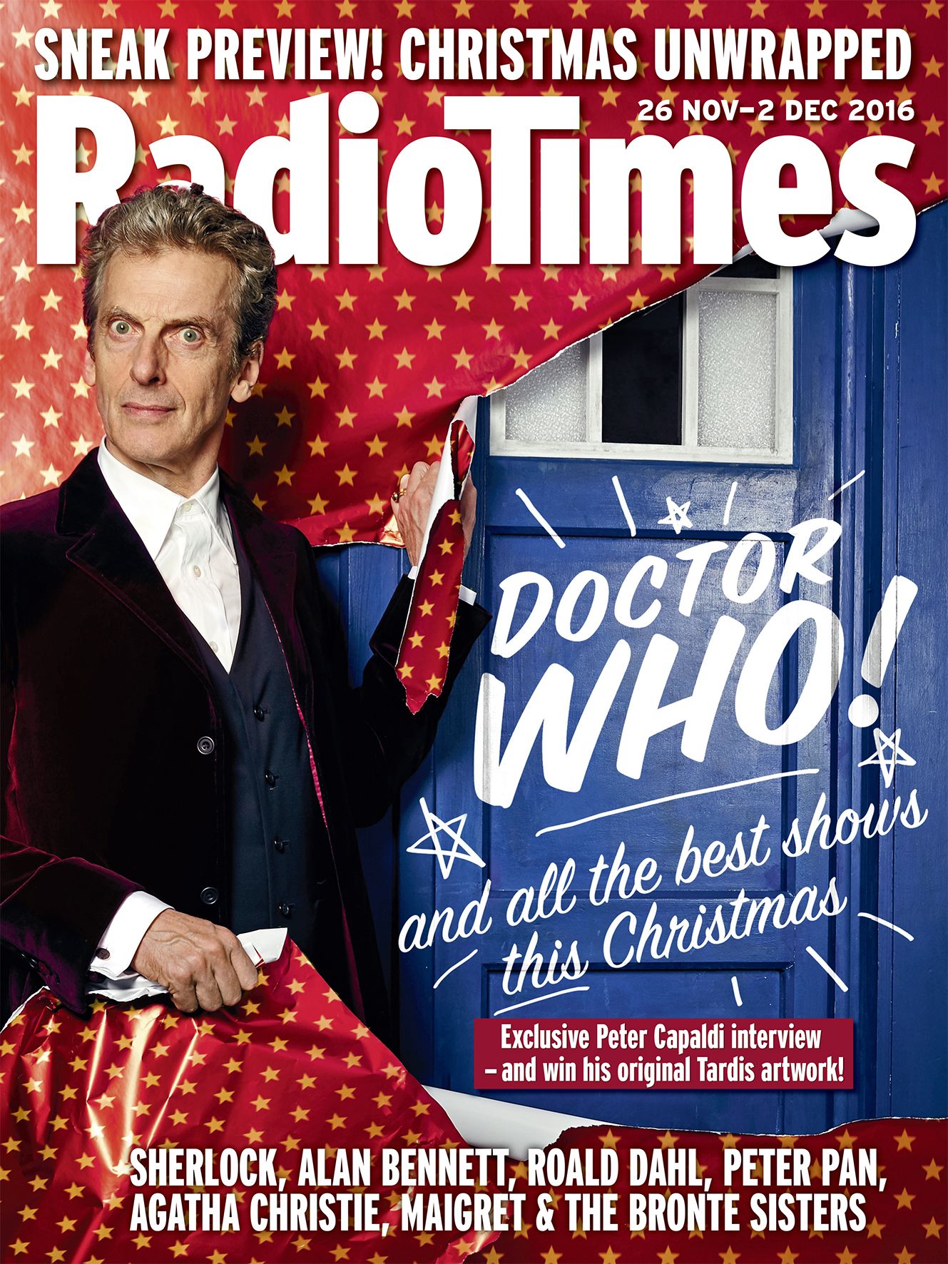 The latest edition of the Radio Times, out today, features an interview with Peter Capaldi in the lead up to this year’s Christmas Special, The Return of Doctor Mysterio.